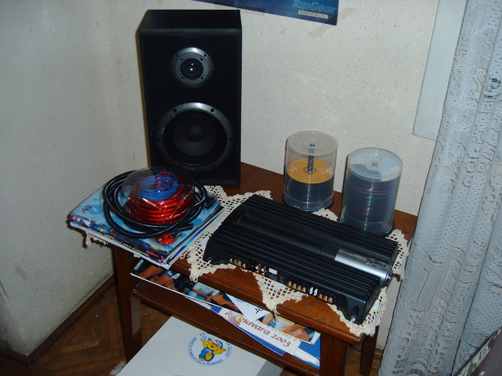 Poze cu progresul meu.Tin sa precizez ca ,cutia urmeaza a fi mochetata si trebuie sa repar ampliful pt bass.Momentan aceasta este configuratia pe care o folosesc.