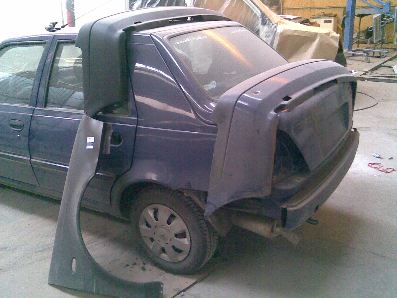 Masina e in service, se demonteaza, se repara, se vopseste, se inlocuiesc piesele avariate in urma accidentului si in urma vandalismului altora ..
