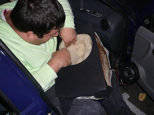 S-a facut si insonorizarea interiorului incintei, pentru a evita eventualele vibratii ale peretilor incintei, chiar daca stratul de fibra era destul de gros ...
