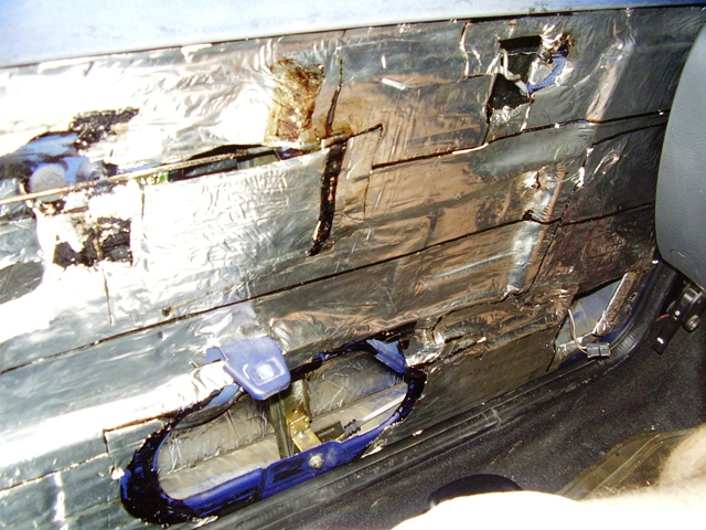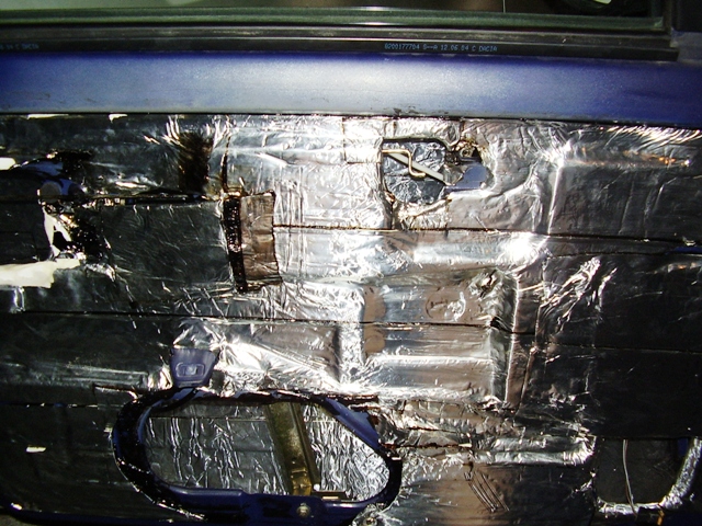 Mai trebuie astupate acele gauri din portiera. Initial nu era pic de gaura dar a trebuit sa umblu pe acolo sa pot insonoriza cum trebuie si interiorul, deoarece operatiunile nu au fost facute in aceeasi zi iar dupa astuparea acelor gauri, se va modifica si prezenta bass-ului in habitaclu oferit de acest sistem.
