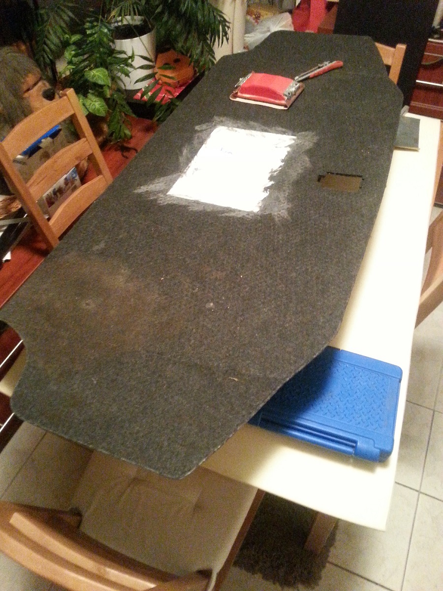 Am refacut placa din portbagaj (a avut o gaura in mijloc) urmeaza sa o reimbrac si pe asta in alcantara.
