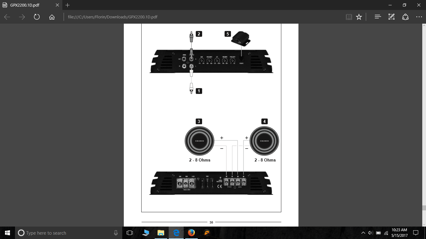 Se conecteazĂŁ Ăźn punte. CautĂŁ legarea Ăźn bridge pt documentare sau manualul amplificatorului. Degeaba e stabil Ăźn 1 ohm pt ca tu ai sw Ăźn 2 ohmi. N-o sĂŁ folosești toatĂŁ puterea lui.