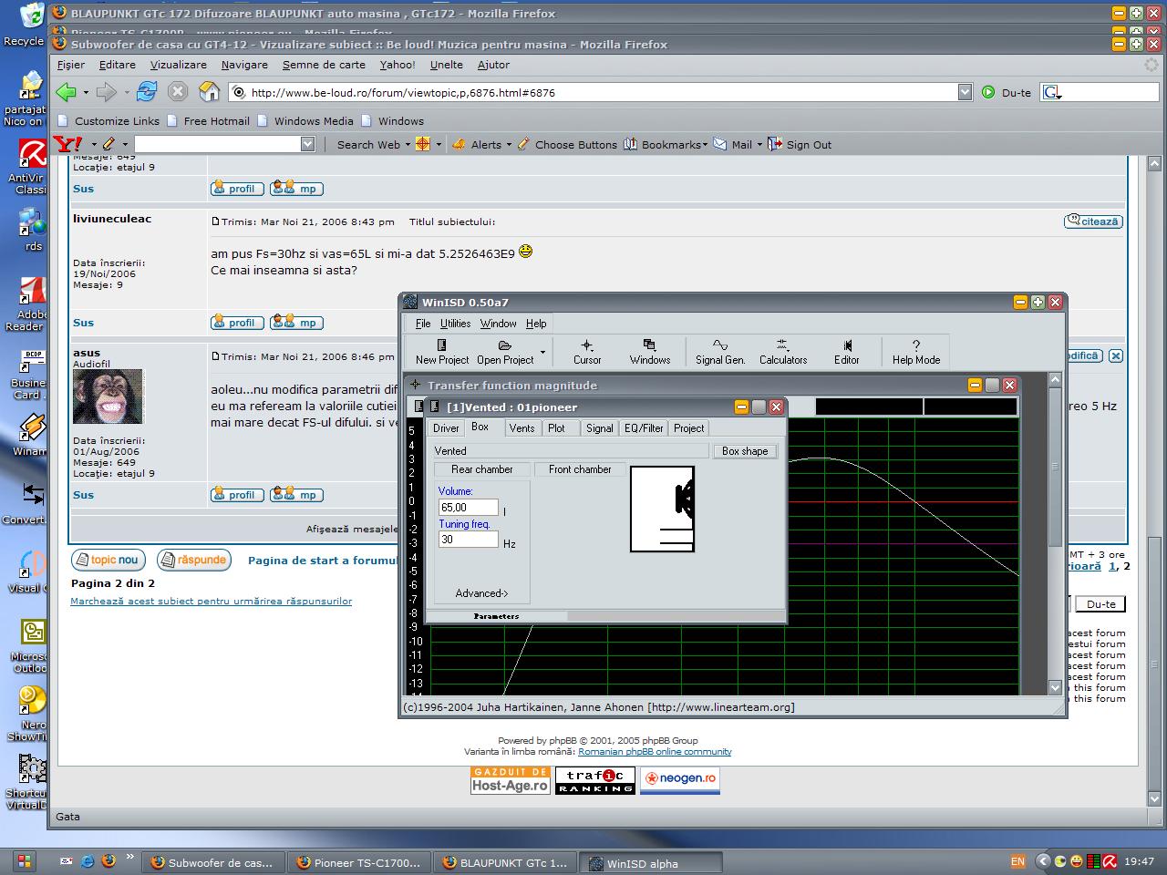 | ce recomanda programul e un raspuns cat mai liniar. poti modifica tu parametrii, incearca sa o tunezi la 30Hz de exemplu, si un litraj de 65L. vezi cum va arata graficul. portul va fi calculat automat.