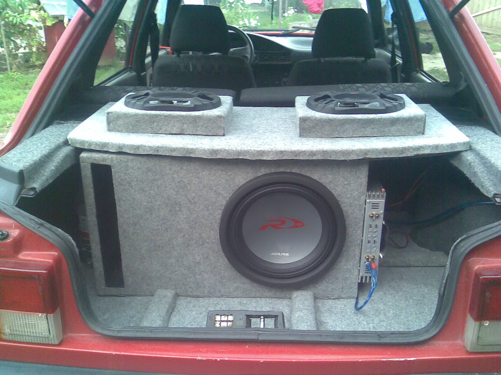 Ca prima modificare a fost cutia subwooferului schimbata acordata la 34Hz. Apoi etajera din spate cea veche a fost aruncata si s-a construit una din pal.