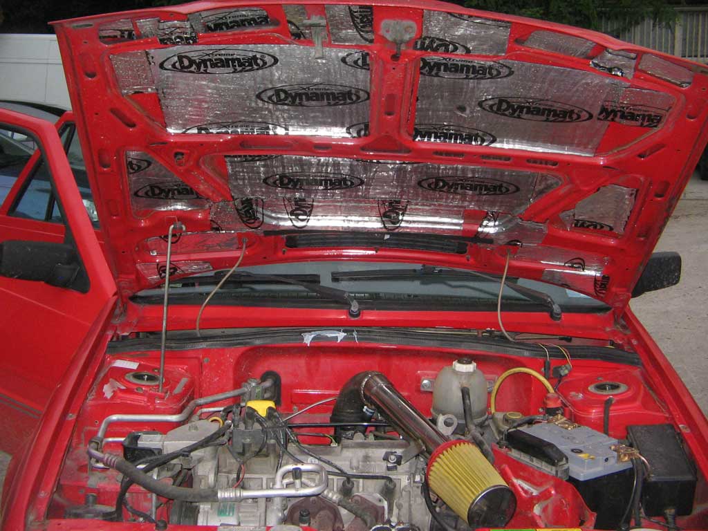 am antifonat capota si haionul cu dynamat extreme, 3 foi pentru amandoua. haionul mai slabut ca se tine bine, la capota a trebuit mai mult lucru dar rezultatul a fost ok. sub capota a aparut o admisie si in spate o toba mai sport. urmeaza sa fac franele si suspensia si trec la audio... maine sper ca apuc sa ma apuc de antifonarea usilor fata.