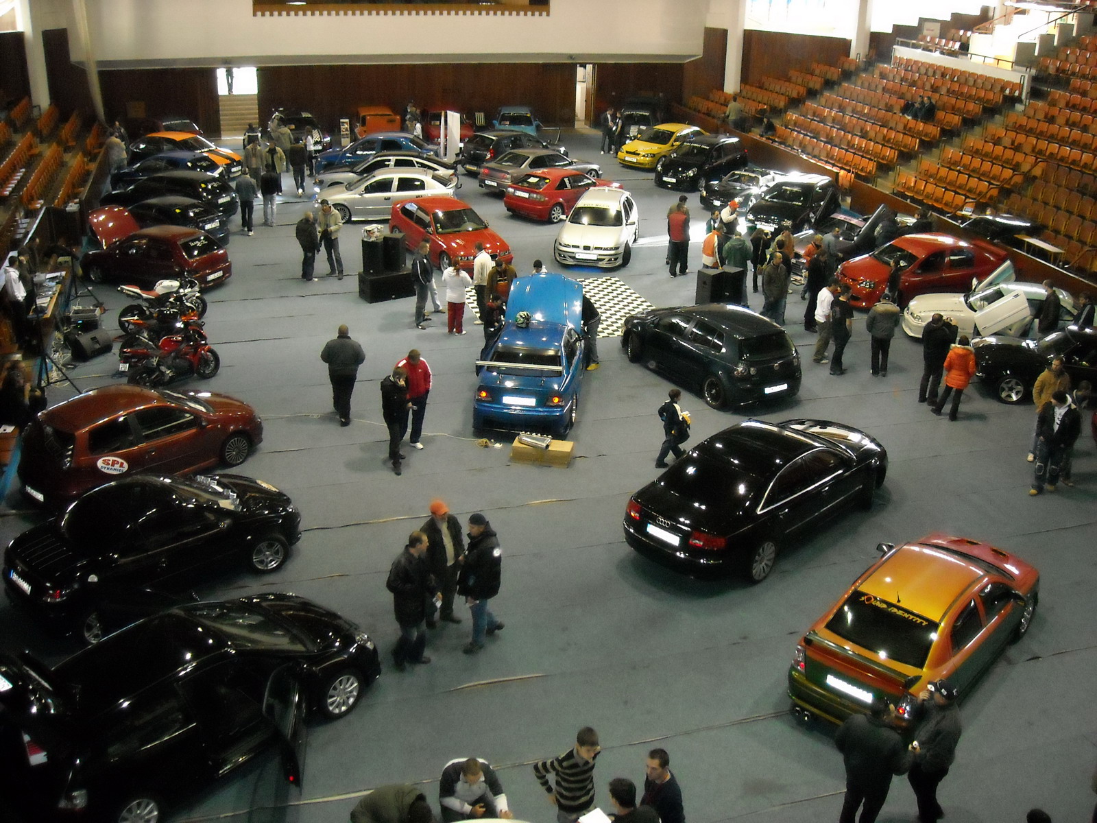 Deci sa va explic cum a stat treaba : masina noastra a fost bagata in sala cam cu 1 ora jumate inainte de masurare, altele masini au stat de sambata in sala. Prima masurare 144.6 db , ne-am dat seama ca e prea de tot . Am lasat masina pornita vreo 45 min cu caldura data la maxim in ea, la a doua masurare am avut 145.9 cu o tensiune la bornele amplifului putin inferioara primei masuratori, a treia masuratoare a fost 145.6probabil s-au mai descarcat bateriile . Deci fara doar si poate, la "rece" am dat mai putin Show-ul a fost ok, a fost ceva lume, din pacate cei din targu mures nu prea le au in domeniul caraudio.