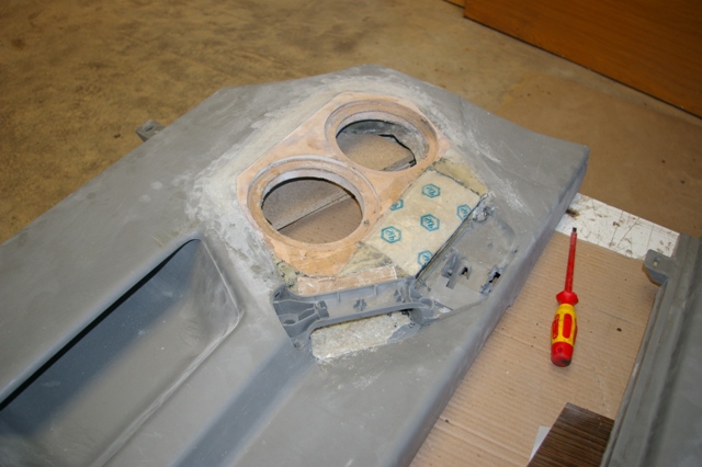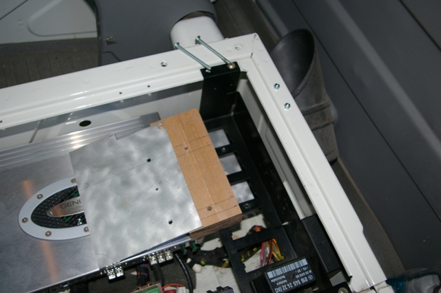 Capacul de la "incaperea amplificatoarelor" a fost re-construit din MDF de 12mm, integrandu-se in el doua orificii pentru aerisire si in viitor pentru instarea unor coolere.