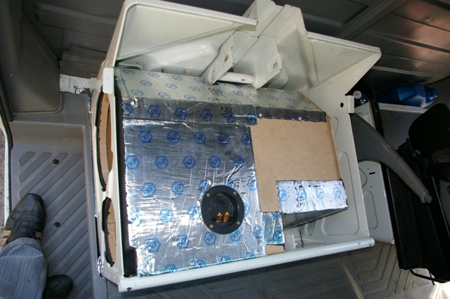 Fata de MDF de la exterior a fost tratata cu o vopsea gen water-born resin, pentru o protectie totala la umezeala, avand in vedere ca iarna pe podeaua din furgon apare si apa...
