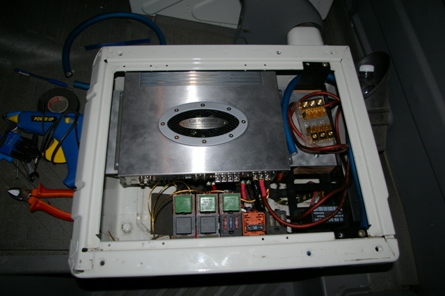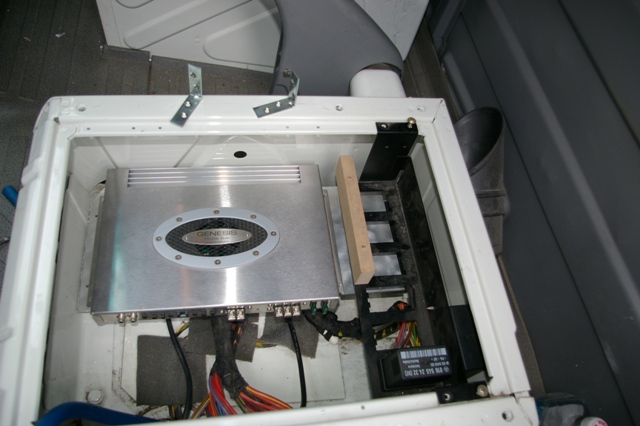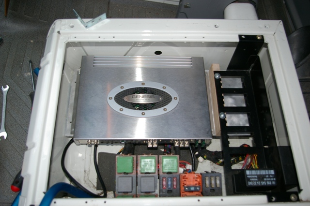 Urmeaza amplasarea amplificatoarelor pentru cele 3 cai din 4... sau 2 din 3... depinde acum daca vom folosi si un traductor dedicat pentru medii la baza parbrizului.