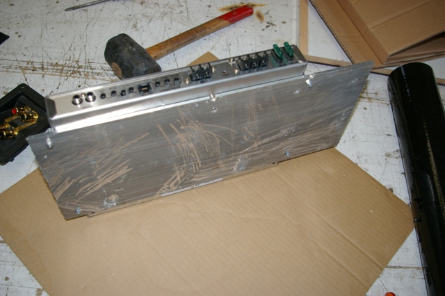 Am folosit placi de aluminiu de 5mm pentru prinderea amplificatoarelor si in acelasi timp a realiza o disipare a caldurii mult mai eficienta.