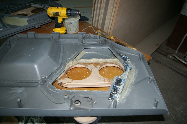 ...mda, fata de usa de furgon, plastic, numai plastic... initial am crezut ca nu exista nici o sansa de a instala 2 mid-woofere de mare putere.