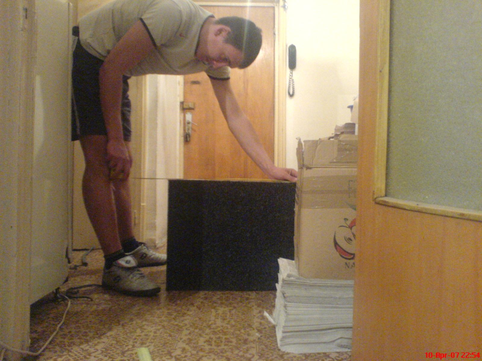 iata si cateva poze cu wooferu:nu a iesit ca o incinta normala dar pentru prima oara eu zic , ca a iesit destul de bine. pentru viitor as achizitiona 2 boxe ovale de 100wRMS in 2ohm si un ampl pt acestea si sa le montez in spate.dar sa vedem.oricum cei care mi-au montat sistemul mi-au spus ca wooferului ii trebuie 100 ore de functionare pt a atinge parametrii maximi de functionare.nu stiu daca asa este dar oricum eu sunt multumit cum a iesit.numai bine.