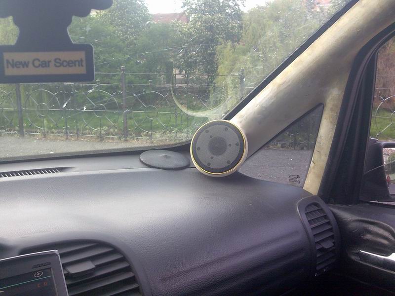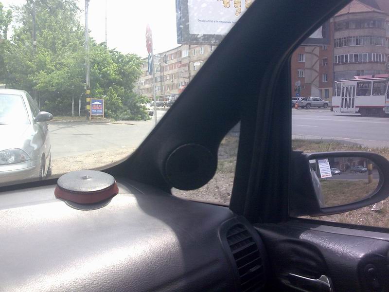 ms ms,din cauza unui buget sarac am renuntat sa visez ca voi apuca sa imbrac stalpii in ceva mai domnesc si am folosit mocheta cum se foloseste la incinte,vreau ceva gen alcantara,sau ceva asemanator daca nu o sa imi permit dar va mai trece mult timp pana atunci,cat despre alt aparat din pacate nu am,l-am vandut sa imi iau camera video si acum imi pare rau,o sa cer unul imprumut,ca si detaliu a iesit excelent,sa vad cum va arata cu doua iesituri din alea sub parbriz care vor si cobora pe bord,oricum pana se vor gasi bani raman momentan asa